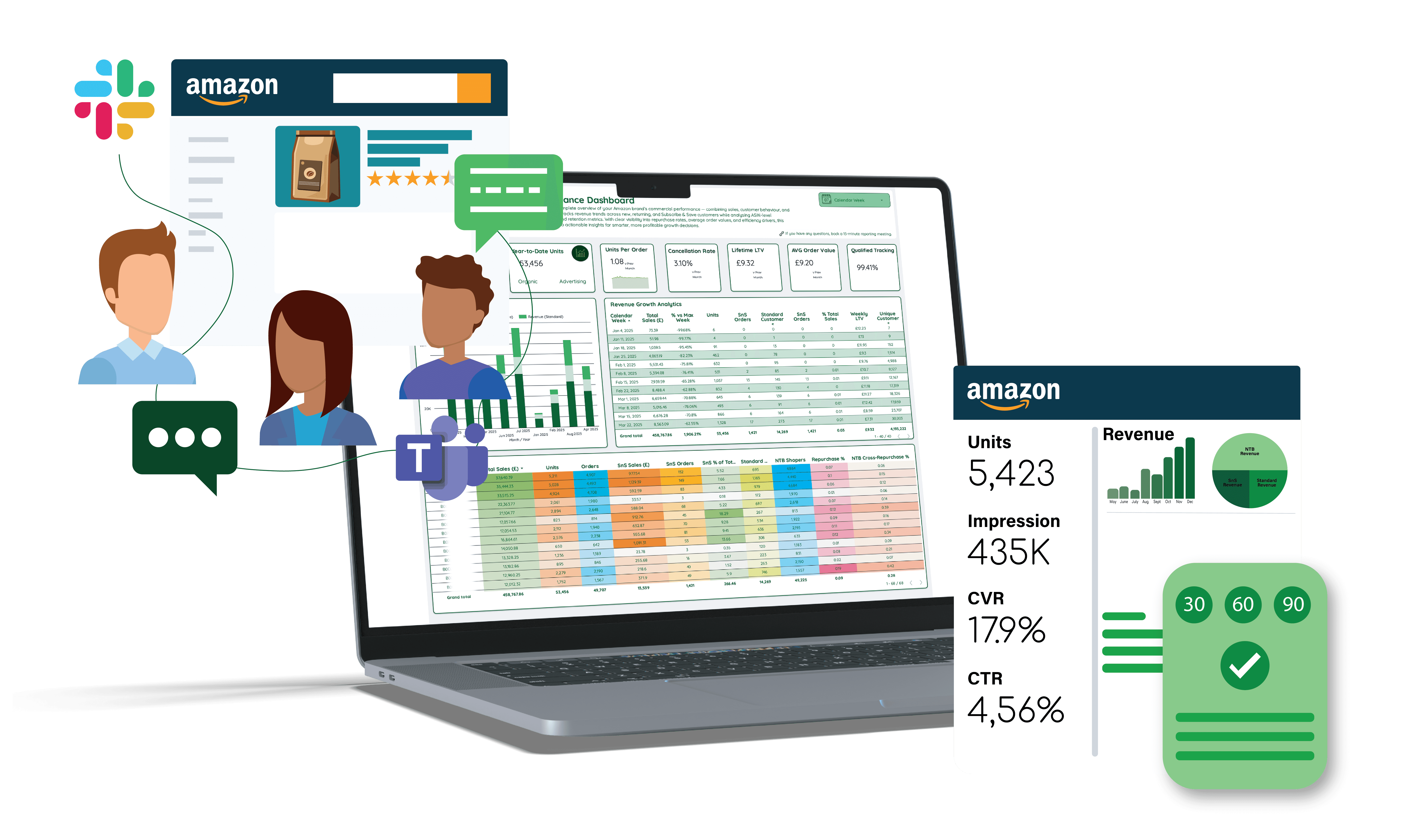 • ASIN-level performance dashboards for visibility at product level.