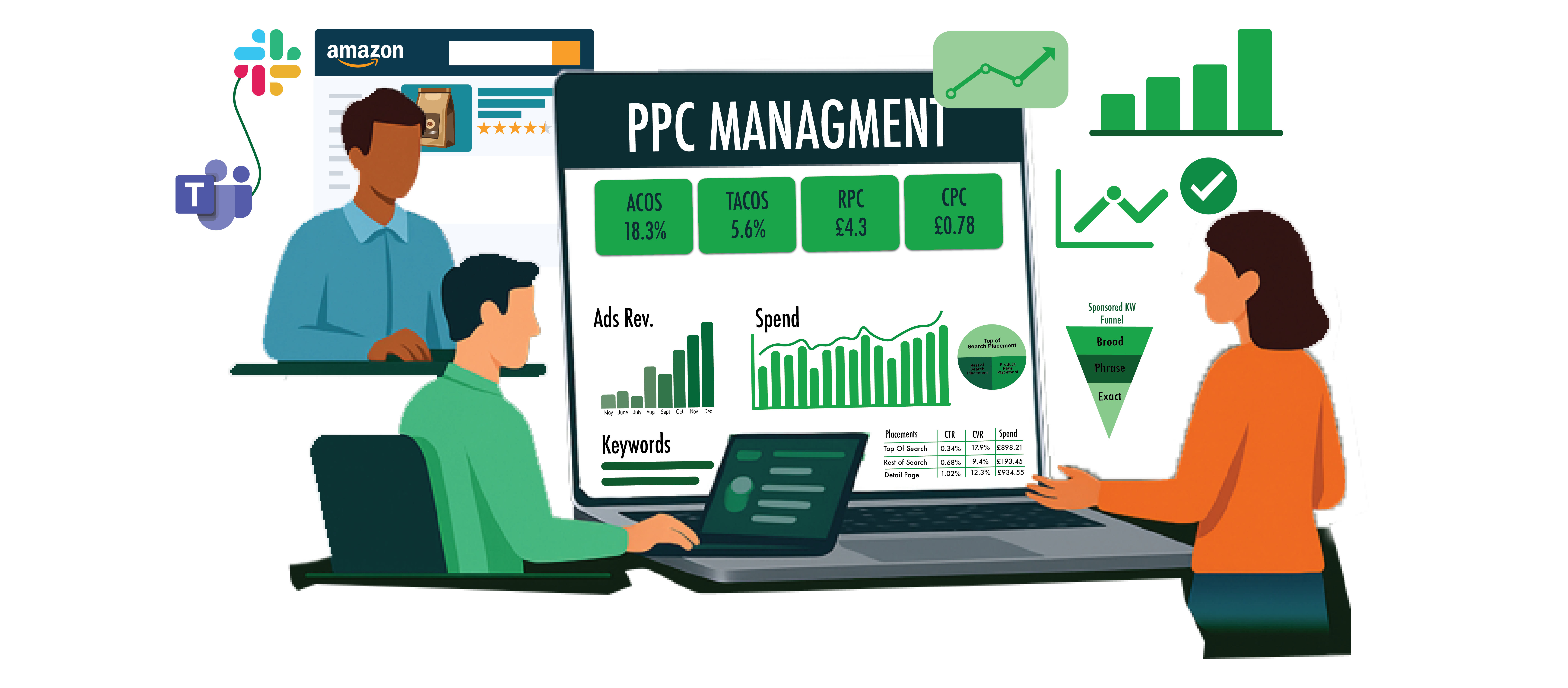 Amazon PPC Management is a performance-driven service designed to scale your brand through strategic advertising across Sponsored Products, Brands, Display, and Sponsored TV. Our approach blends rigorous analysis, precise targeting, and continuous optimisation to maximise visibility, improve efficiency, and drive profitable growth. Below is an overview of the key components of our PPC Management service